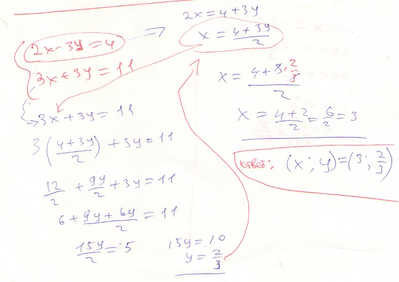 3х+3у=11, 3•5+3у=11, 3у=11-15, 3у=-4, у=3/4. ответ (5;3/4)