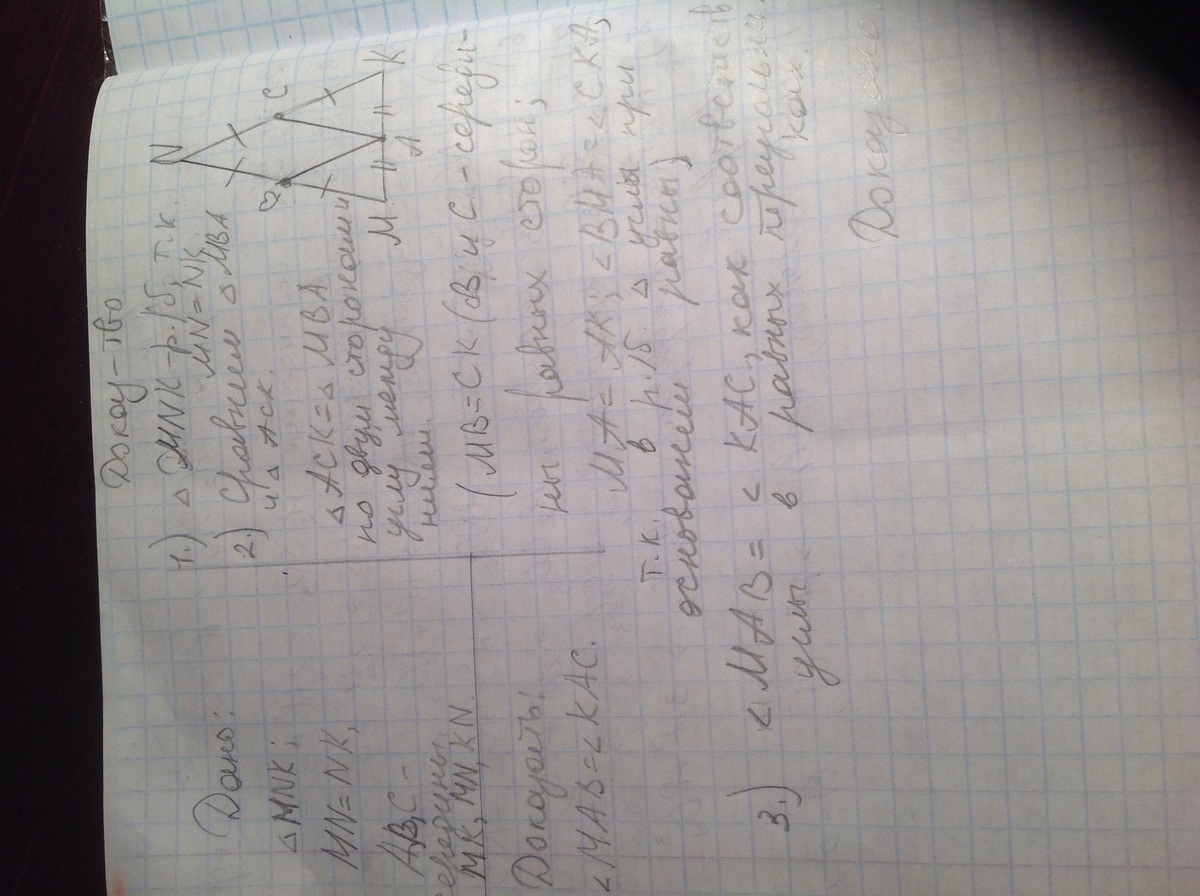 МNK- равнобедренный (р/б) треугольник, т.к