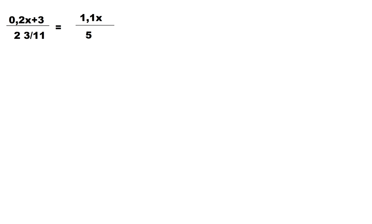 0,2х + 3 * 5 = 2 3/11 * 1,1х