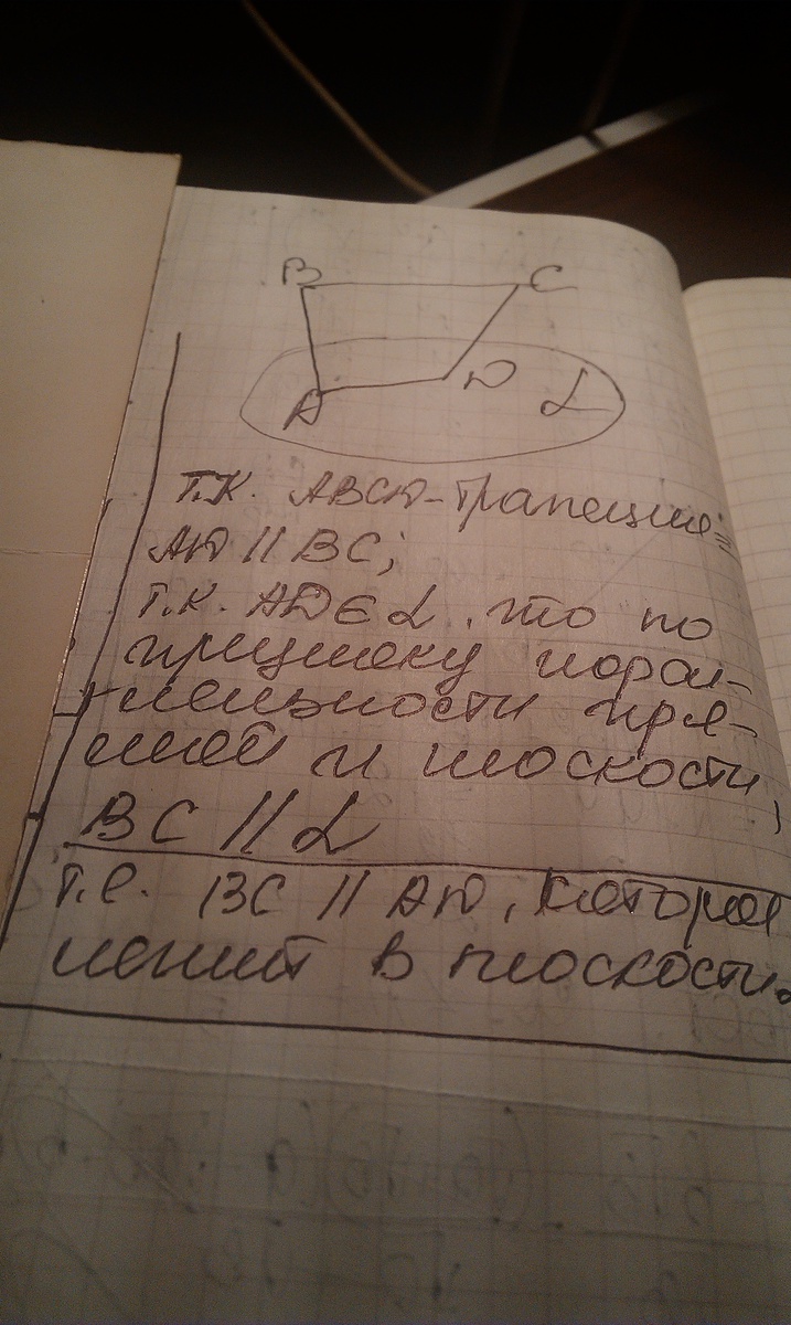основа AD трапеції ABCD лежить у площині a, а точки B і C не належать цій площині. доведіть що пряма BC паралельна площині a