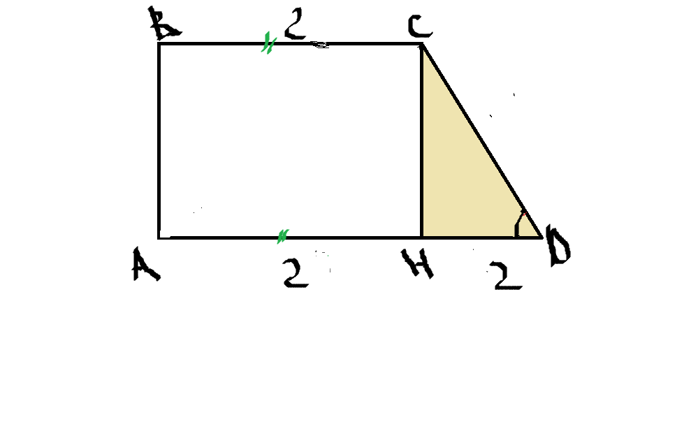 найдите площадь прямоугольной трапеции, основания которой 2 и 4, большая боковая сторона составляет с основанием угол 45 градусов.
