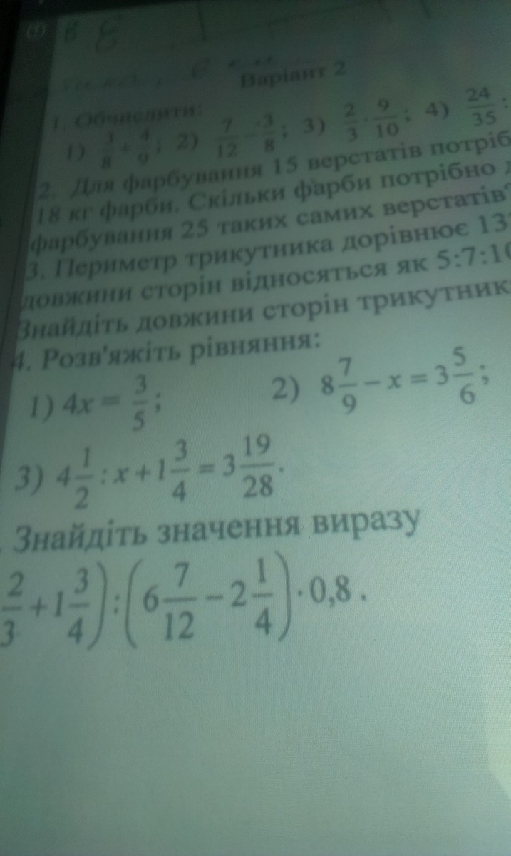 х=3/5 : 4/1= 3/5 * 1/4 = 3/20