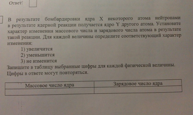 при бомбардировке ядра нейтронами (без последующего распада) массовое число увеличивается, зарядовое число - не изменяется