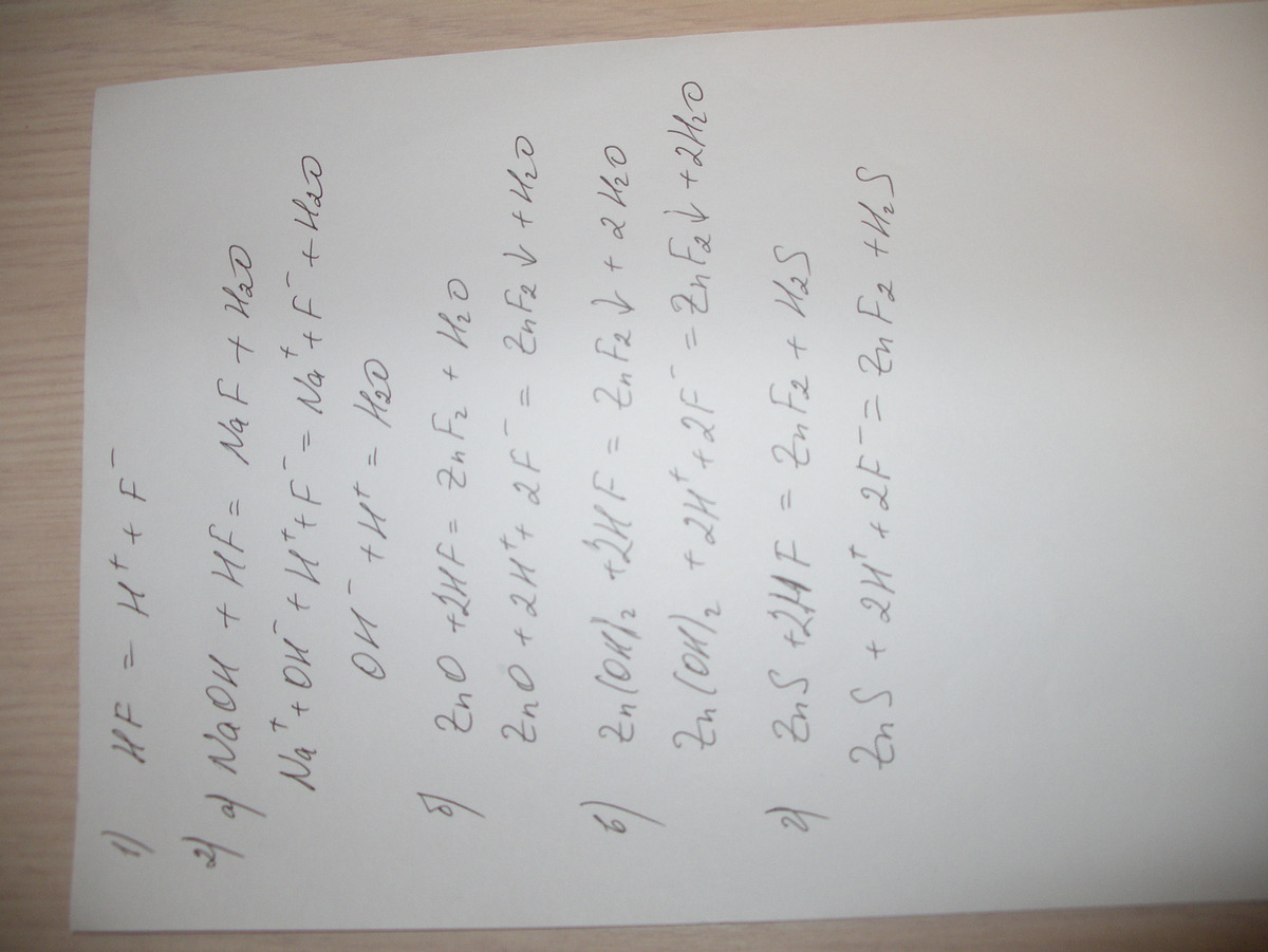 1)Напишите уравнение реакции диссоциации плавиковой кислоты(HF)