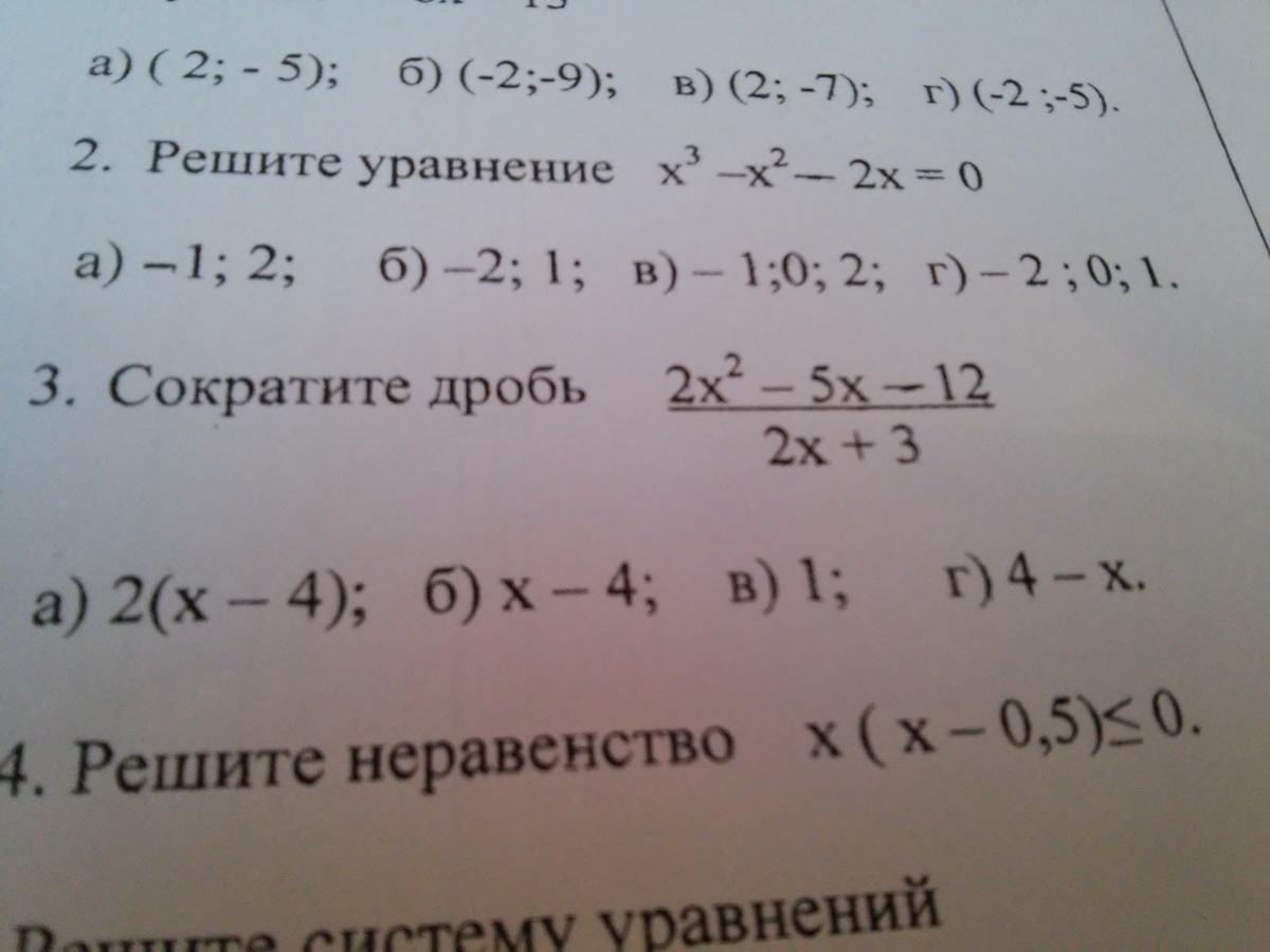 frac{2x^2-5x-12}{2x+3}=frac{2(x-4)(x+frac{3}{2})}{2x+3}=frac{(x-4)(2x+3)}{2x+3}=x-4
