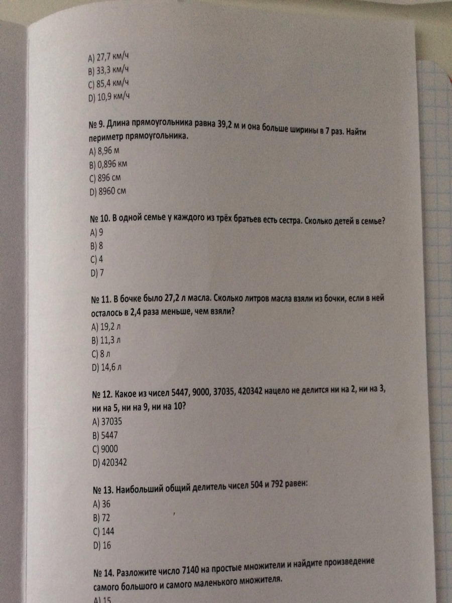 9) 1) 39,2 : 7 = 5,6 (м) - ширина