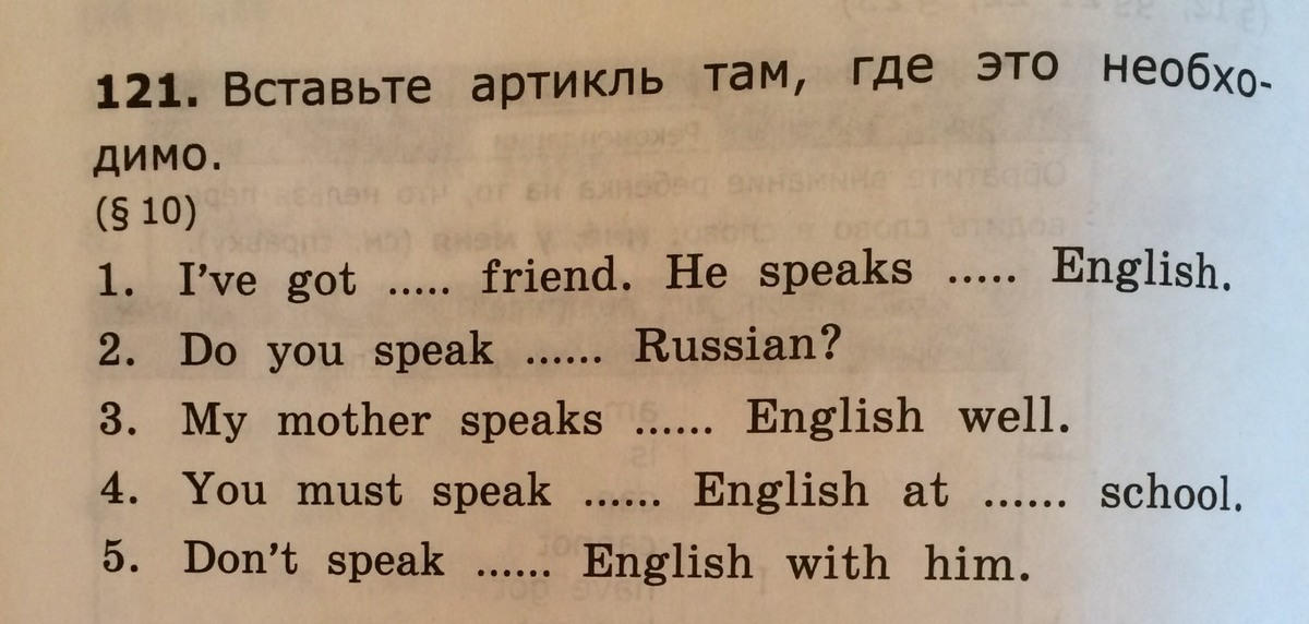 1) I've got a friend. He speaks English
