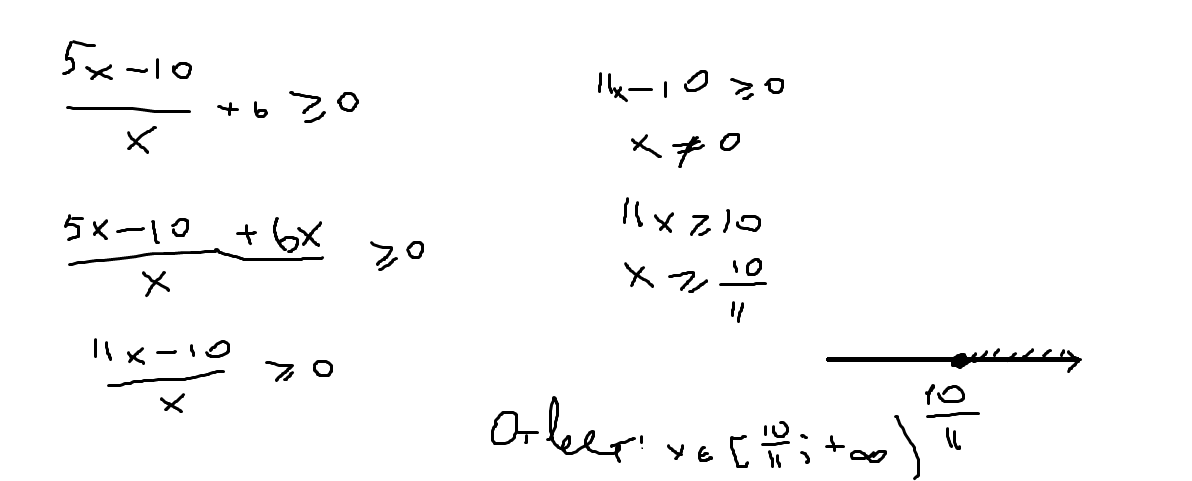 х принадлежит [10/11 ; + бесконечности)