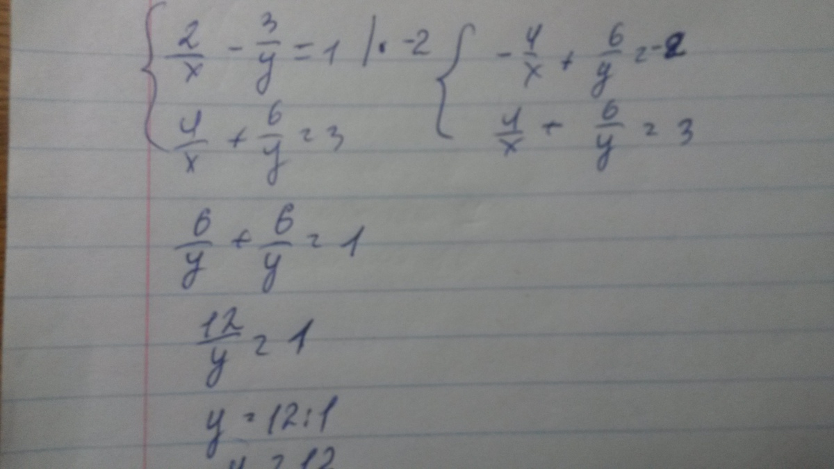 Решите систему составленную из двух уравнений 2/x-3/y=1; 4/x+6/y=3.