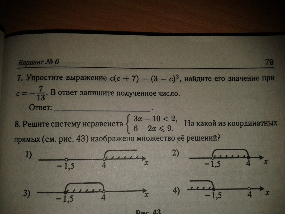 c^2+7*c-(9-6*c+c^2)=c^2+7*c-9+6*c-c^2=13*c-9=13(-7/13)-9=-16