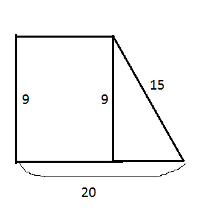 В прямоугольной трапеции боковые стороны равны 15см и 9см, а большее основание-20см. Найдите площадь трапеции.