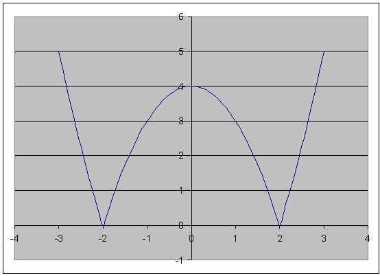 функция имеет формулу y=|x^2-4|