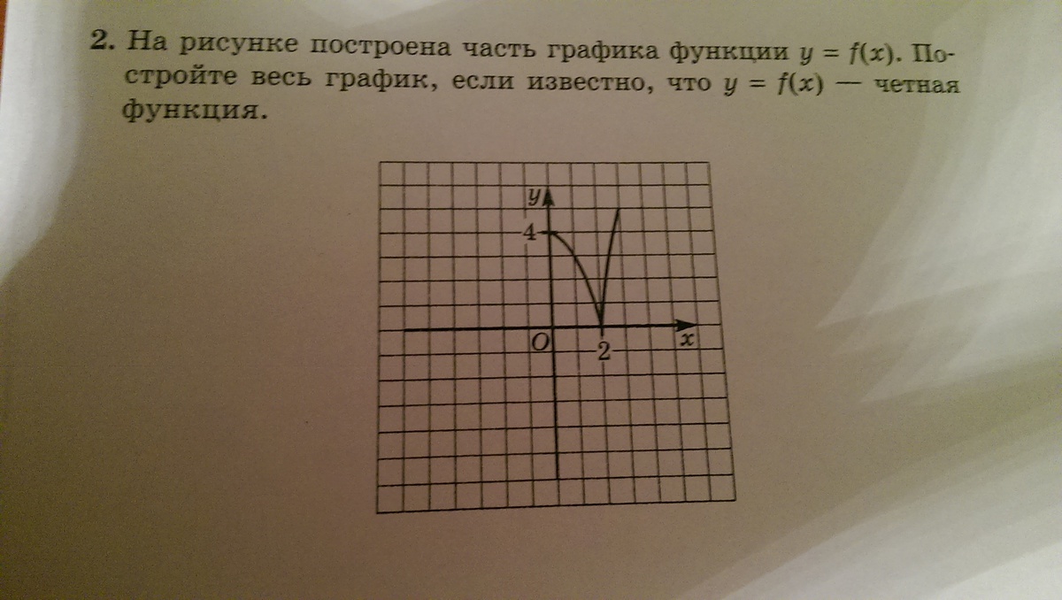 На рисунке построена часть графика функции y=f(x).Постройте весь график,если известно,что y=f(x)-чётная функция.