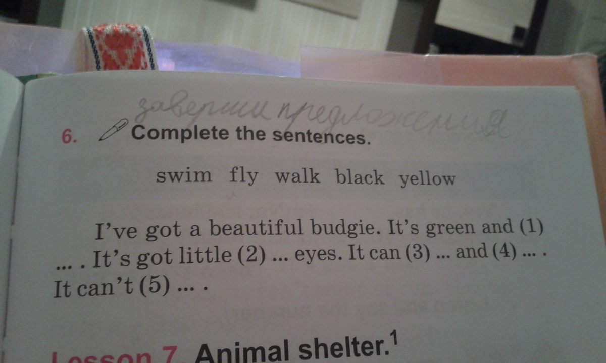 i've got a beautiful budgie. it's green and yellow. it's little black eyes. it can fly and walk. it can't swim.