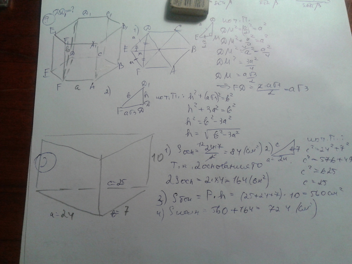 1. Знайдіть висоту правильної шестикутної призми, якщо сторона ії основи дорівиюе а, а менша з діагоналей призми — b