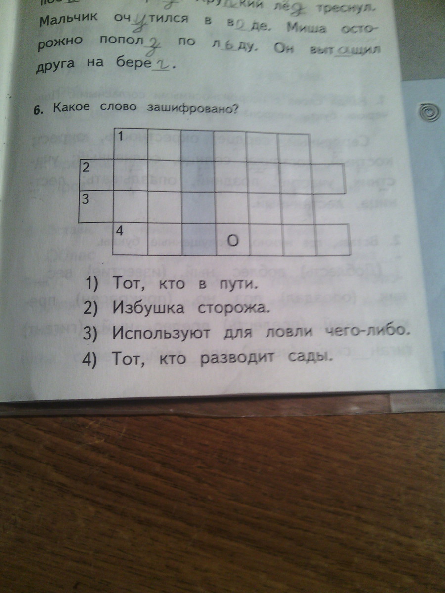 3 слово не отгадал, но судя по остальным буквам, зашифрованное слово - труд.