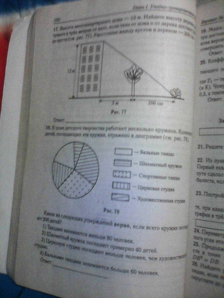 номер 17. пусть х- высота многоквартирного дома. по рисунку составим пропорцию: