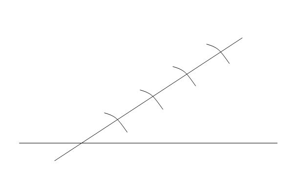 1) проведем прямую, пересекающую данную; от точки пересечения отложим на этой прямой 4 отсечки одинаковым раствором циркуля (рисунок 1)