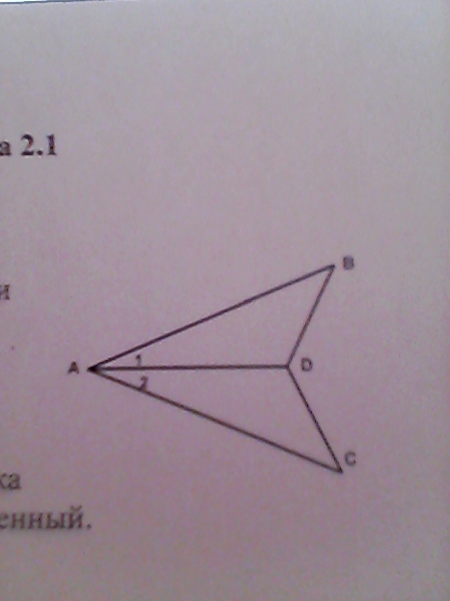 угол 1=углу2 так как это углы при основании равнобедренного треугольника,если они равны,то значит треугольник равнобедренный и AB=CD