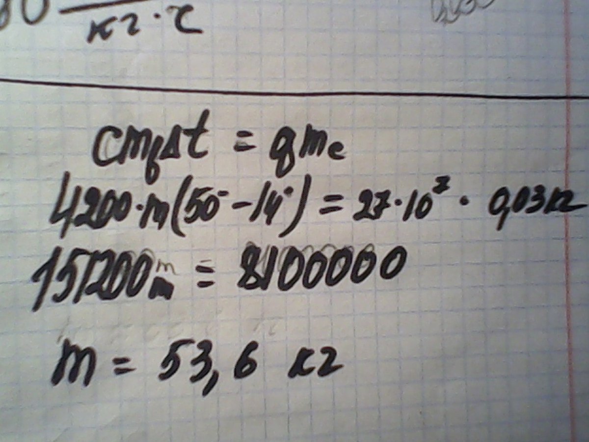 2)Сколько воды взятой при температуре 14°С,можно нагреть до 50°С,сжигая спирт массой 30гр и считая что вся выделяемая при горении спирта энергия идет на нагревание воды?с воды=4200дж/кг*°С q1=27*10в 7 степени дж/кг
