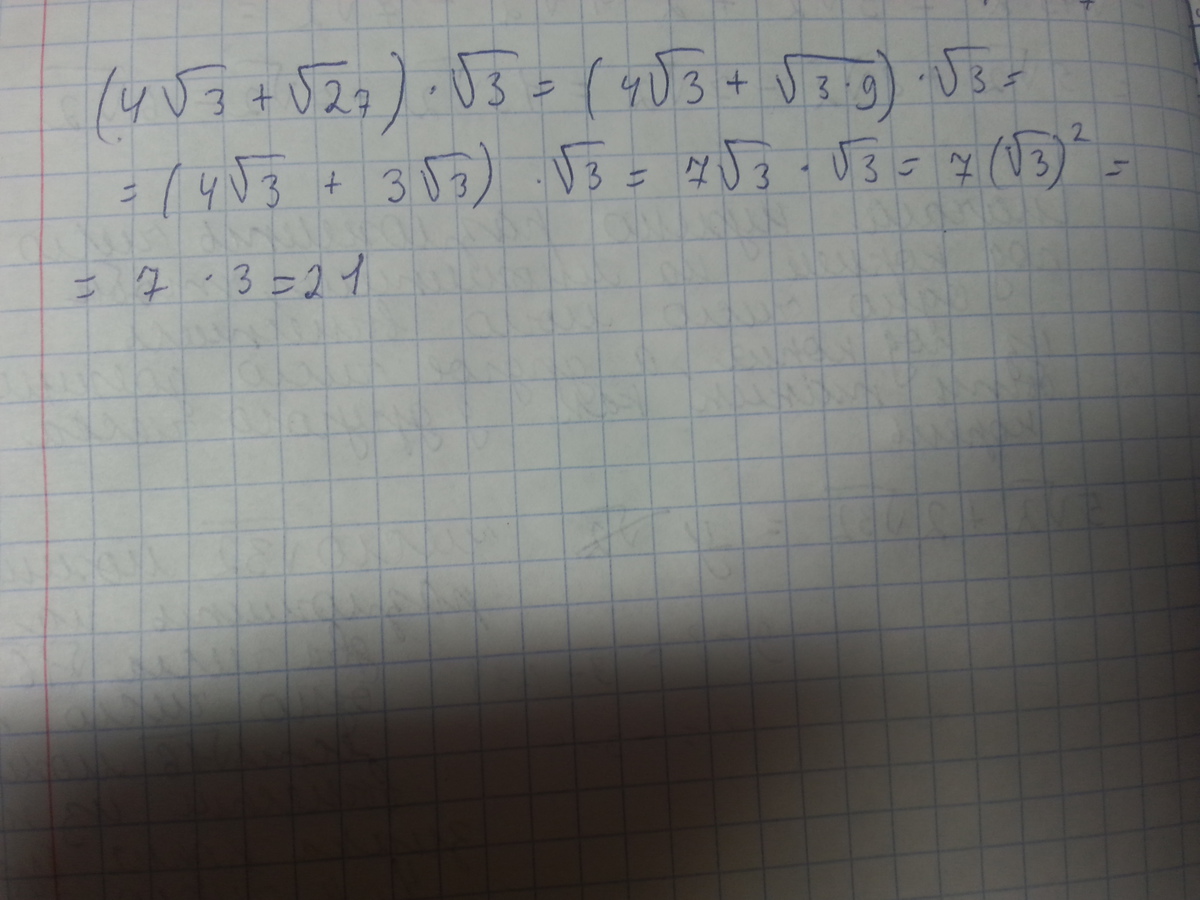 (4√3+√27)*√3=(4√3+3√3)*√3=7√3*√3=21