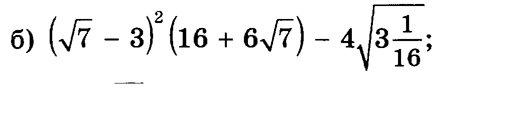 ...=(7-6sqrt{7}+9)(16+6sqrt{7})-4sqrt{frac{49}{16}}=\=(16-6sqrt{7})(16+6sqrt{7})-4*frac{7}{4}=16^2-(6sqrt{7})^2-7=-3