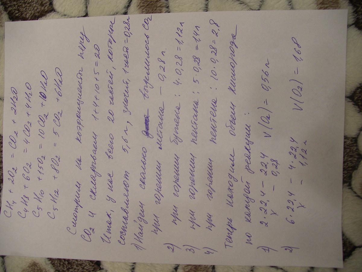 Какой объём воздуха необходим для сжигания смеси газов объёмом 5,6 л, состоящей из 10% метана, 45% бутена, 15% пентана и пропена?