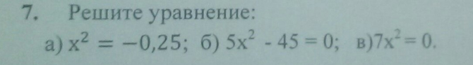 а) нет решений, квадрат числа никогда не будет меньше нуля, x^2<0 невозможно