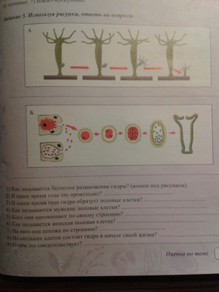 1. ПОЧКОВАНИЕ 2 летом, 3 осенью, 4 сперматозоиды, 5 жгутиковых, 6 яйцеклетка, 7 амебу, 8 одной, о происхождении от одноклеточных