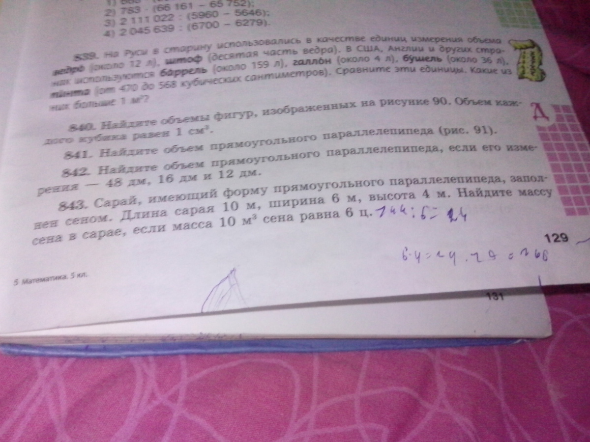 1) 10 * 6 * 4 = 240 м³ - объем сарая, он же - объем сена