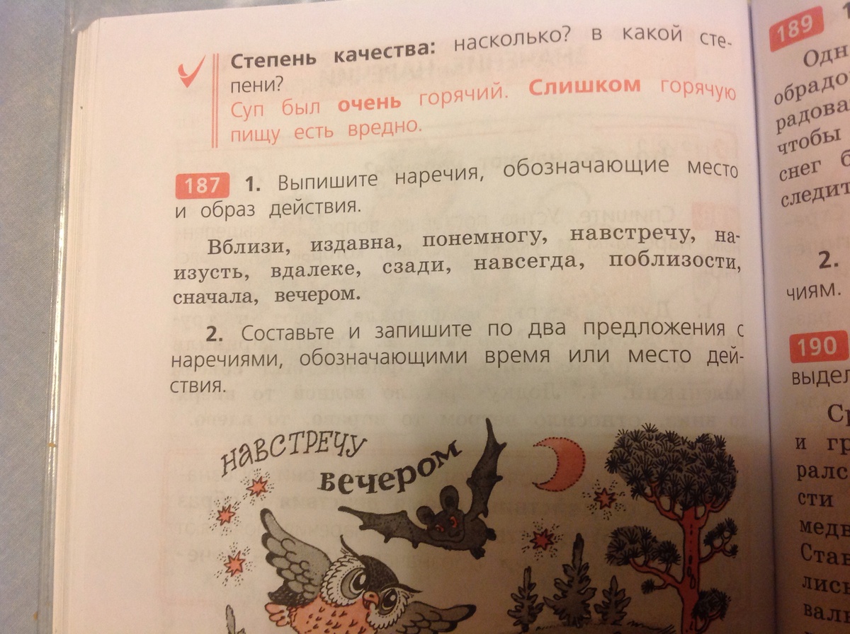 Наречия образа действия отвечают на вопросы КАК? КАКИМ ОБРАЗОМ?: понемногу, сначала, навсегда, наизусть.