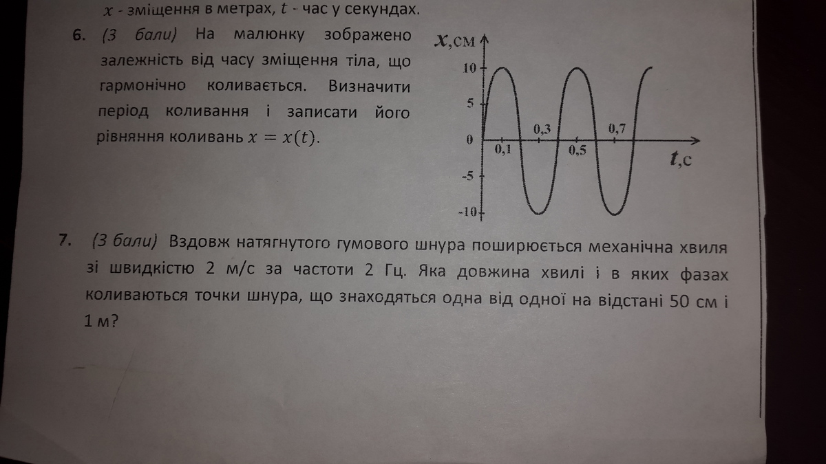 6) x=0.1sin (2π/T)*t T=0.4 c x=0.1sin (5π*t)