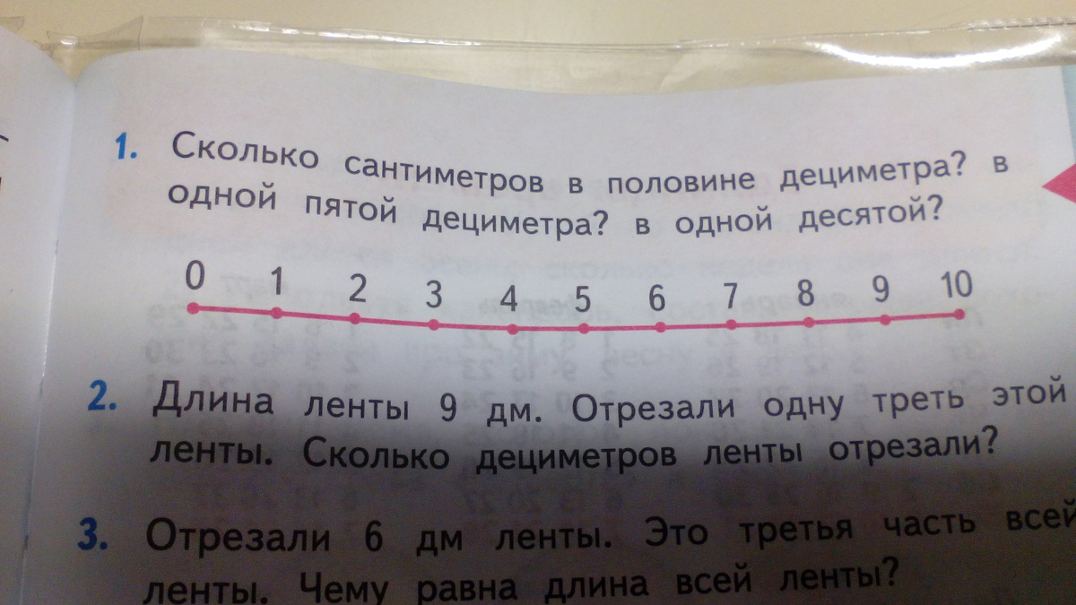 9 : 3 х 1 = 3 дм. отрезали от этой ленты.