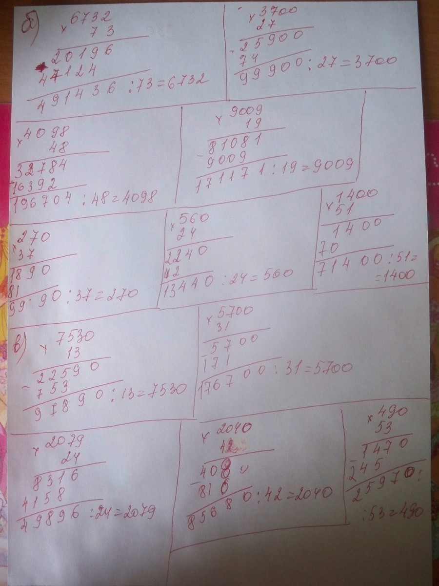 Выполни умножение в столбик с объяснением..б) 6732*73 3700*27 4098*48 9009*19 270*37 560*24 1400*51 в) 7530*13 5700*31 2079*24 2040*42 490*53 630*71 2300*30 помогите пожалуйста я очень прошу