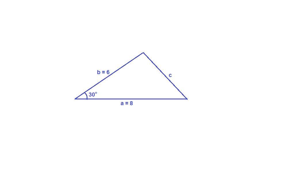 c² = 8² + 6² - 2 · 8 · 6 · √3/2