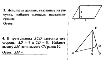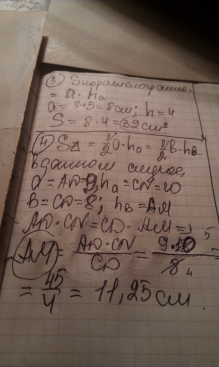 площадь треугольника = 12*сторона*высоту , к которой опущена эта высота, по условию дано сторона АД и высота, опущенная к ней СН и сторона СД и высота АМ.