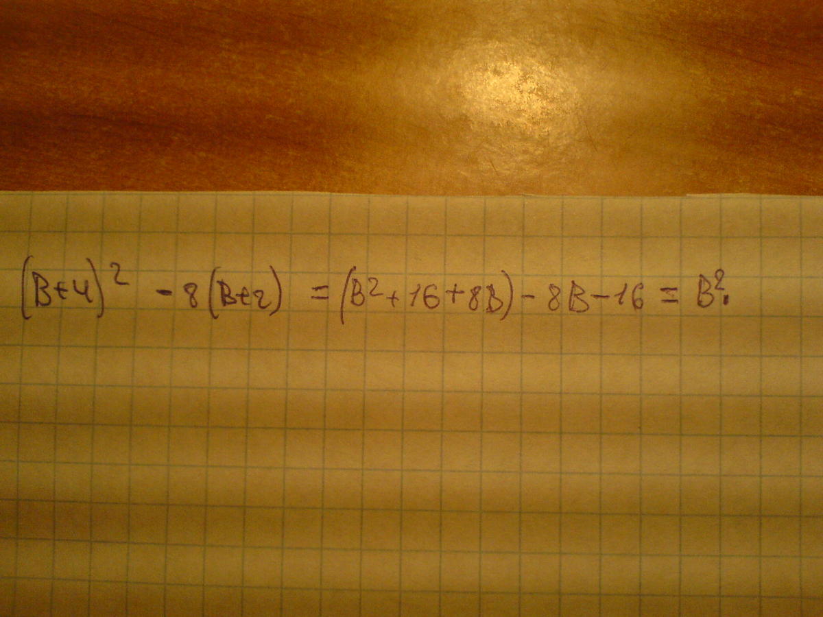 (B+4) в квадрате -8(B+2)=B^2+8B+16-8B-16=B^2