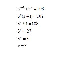 вынесли за скобку 3^x, в четвертой строке по свойству степени