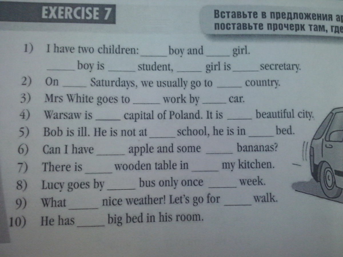вставьте в предложения артикли a, an, the или прочерк если артикль не нужен