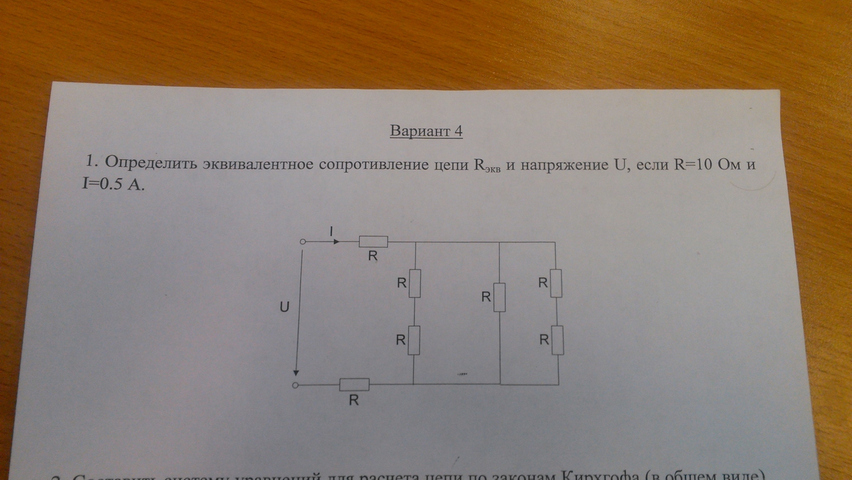 Определить эквивалентнуое сопротивление в цепи Rэкв и напряжение U если R=10 Ом и I= 0.5 А