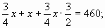 В трех гаражах 460 машин. Число машин в первом гараже составляет 75 % числа машин во втором гараже, а в третьем гараже в 1,5 раза больше машин, чем в первом. Сколько машин помещается в каждом гараже?