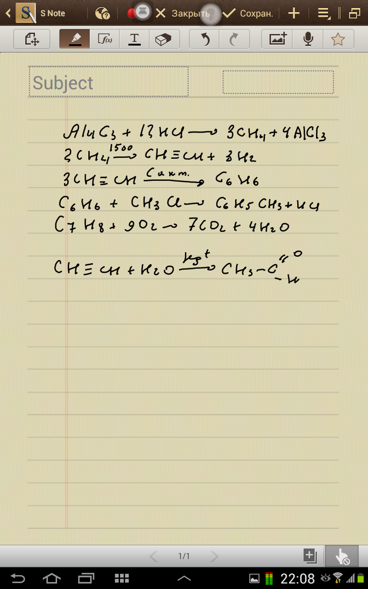 Al4C3 → CH4 → X → C6H6 → толуол → CO2
