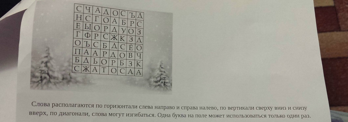 снегопад, звездочка, доброта нашла. Осталось два слова из 6 букв.