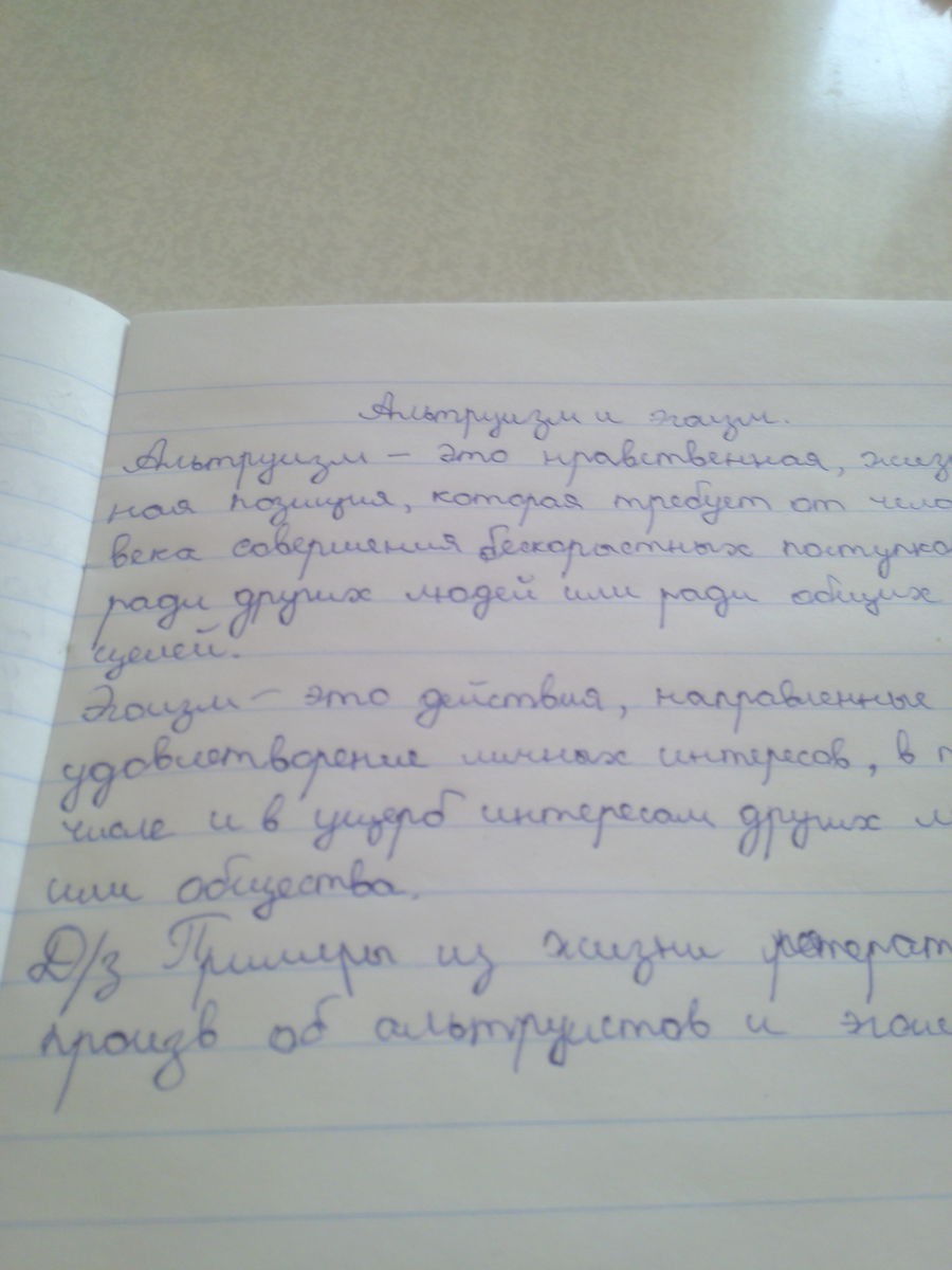 срочно помогите написать!!! д/з примеры из жизни летературных произведений об альтруистов и эгоизмов там написано что такое альтруизм и эгоизм
