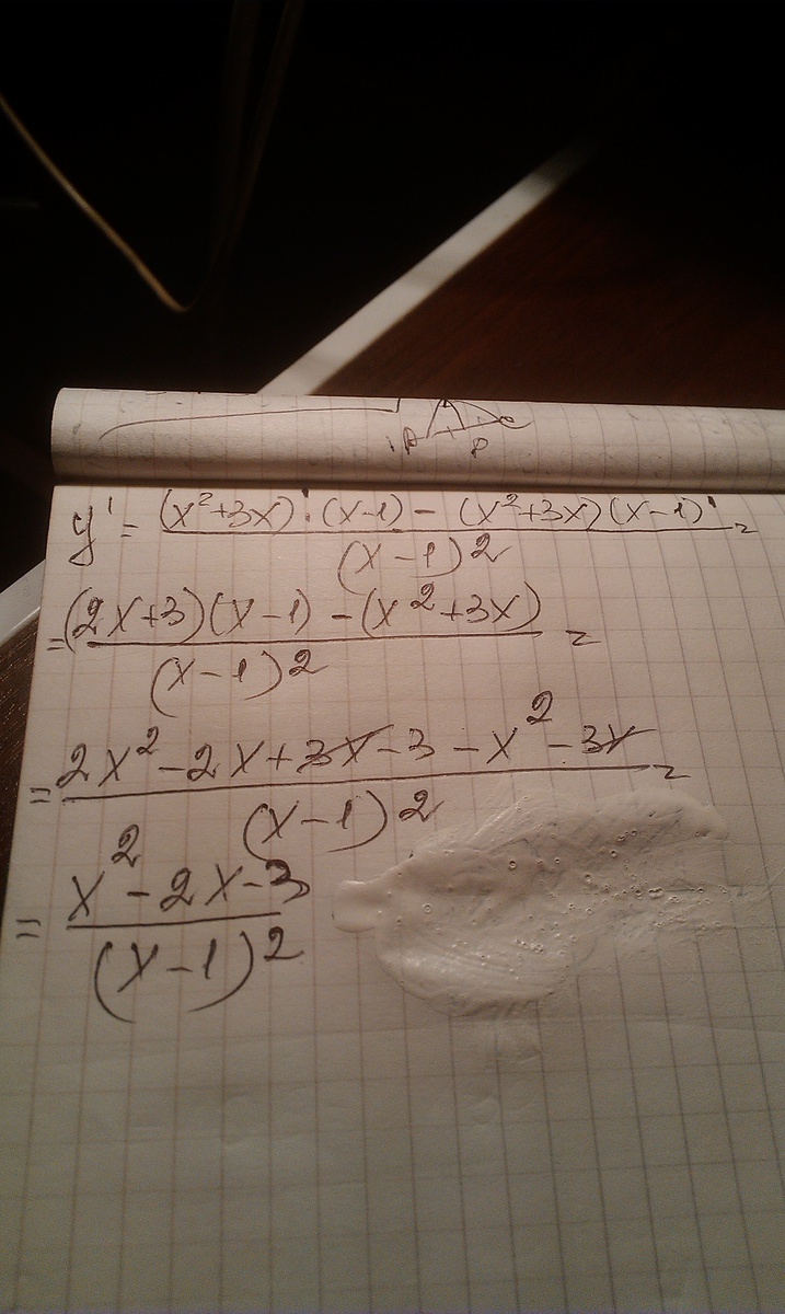 = [(x^2+3x)' * (x-1) - (x^2+3x) * (x-1)'] / ([-1)^2 =