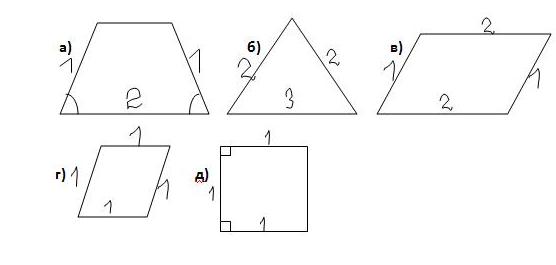 Из данных фигур выберите ту, которая не имеет осей симметрии (числа обозначают длины сторон). Помогите.