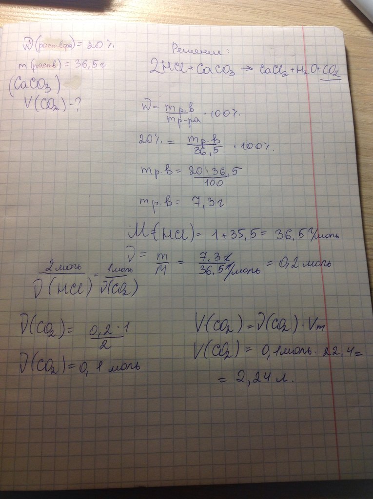 какой объем углекислого газа (н.у.) выделится при действии 36,5г 20%ного расвора соляной кислты на избыток известняка