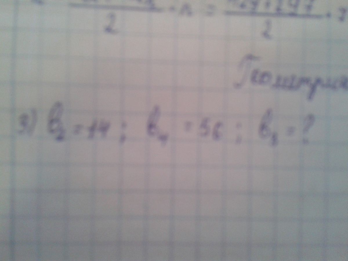 b4=56; b2=14, тогда (56-14)/2=42/2=21, значит b3=14+21=35