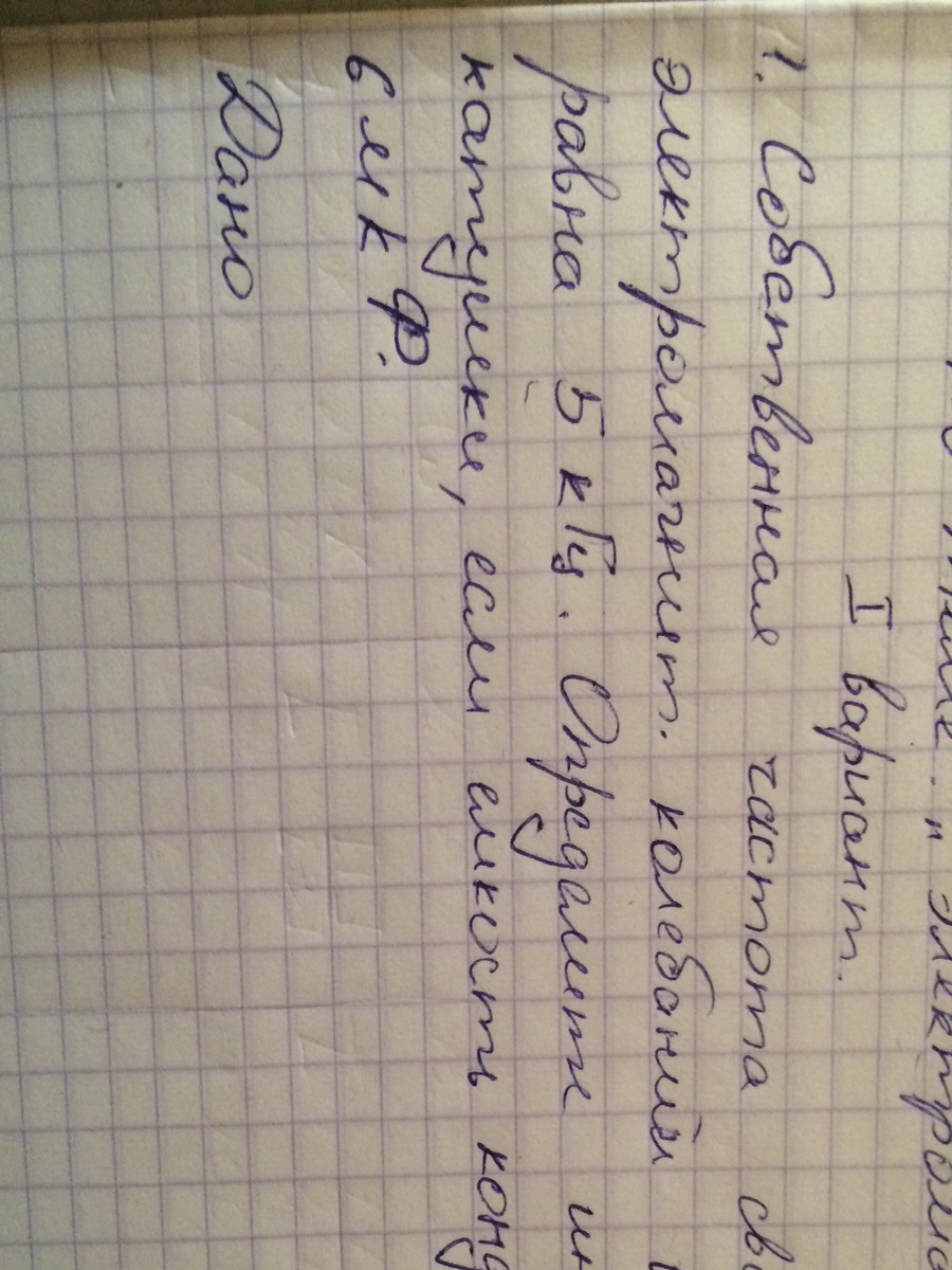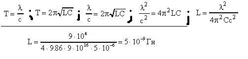 Находим индуктивность L= T^2/4*п^2*C=0,005Гн=5*10^-9 Гн