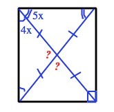 найдите угол между диагоналями прямоугольника , если каждая из них делит угол прямоугольника в отношении 4:5